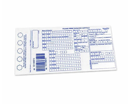 demographic card available in either black or OCR (optical character recognition) red.